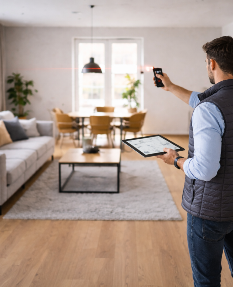 Sind Bestandsunterlagen nicht vorhanden oder nicht mehr verwertbar, erfasse ich Ihre Immobilie direkt vor Ort mit moderner, laserbasierter Messtechnik. Dabei ist es unerheblich, wie stark eine Wohnung möbliert oder genutzt wird. Auch zugestellte Räume können zuverlässig aufgemessen werden, ohne dass Umräumarbeiten notwendig sind. Durch hohe terminliche Flexibilität lässt sich das Aufmaß unkompliziert in Ihren Alltag integrieren und bildet eine präzise Grundlage für die weitere Ausarbeitung der Unterlagen.